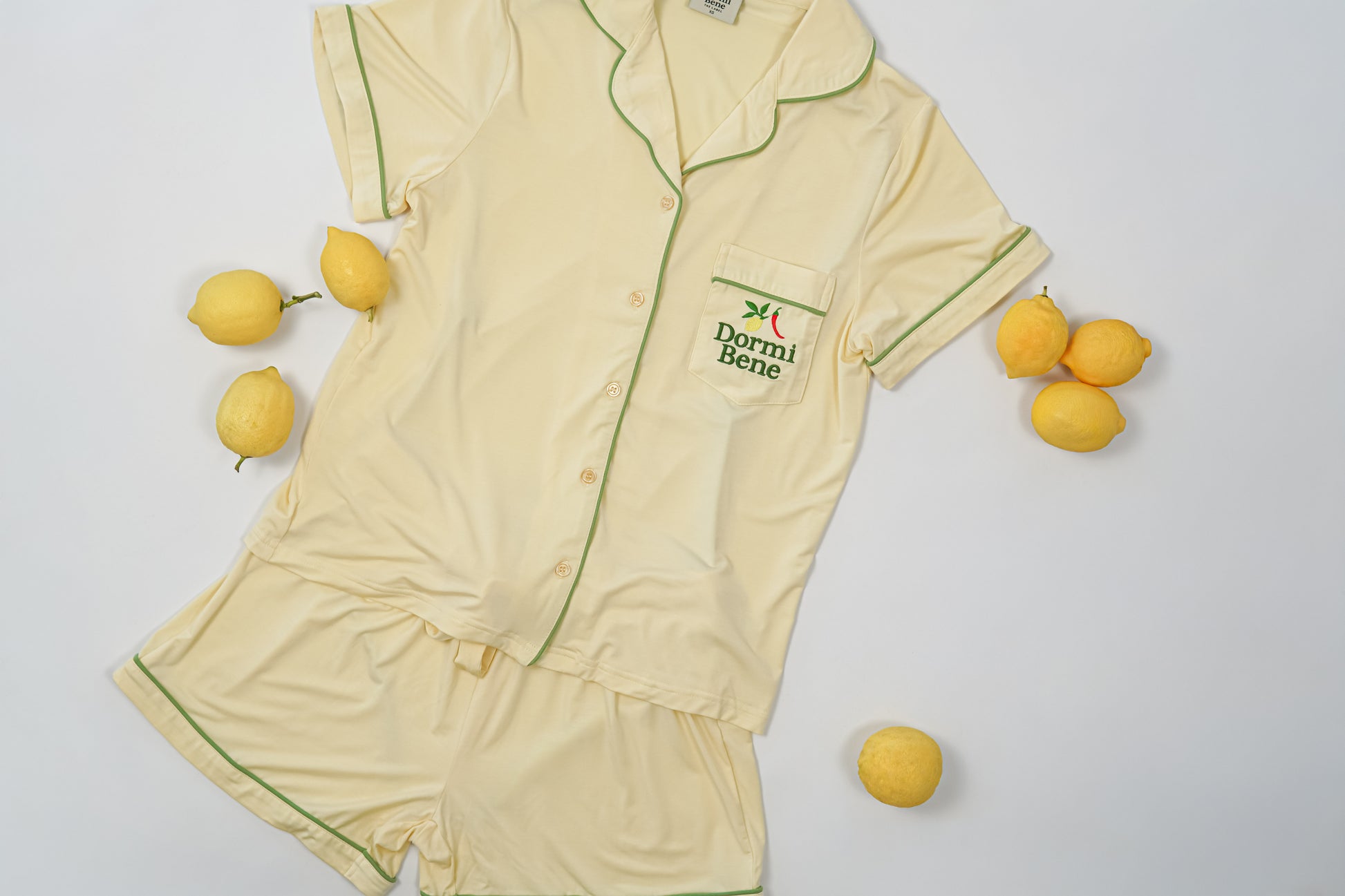 The Limoncello set captures the golden light of the Amalfi coast - that first sip of something sweet and citrus after a long, slow afternoon. Crafted from TENCEL™ Modal, an eco-luxury fabric known for its silky drape and breathability, it feels impossibly soft against the skin - a true indulgence in comfort and craftsmanship.