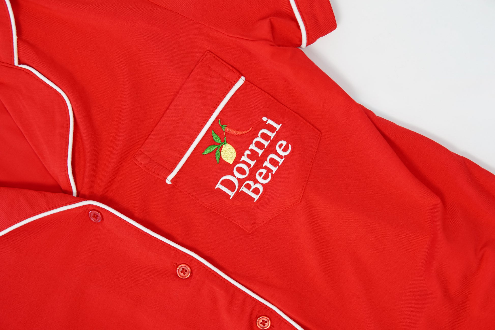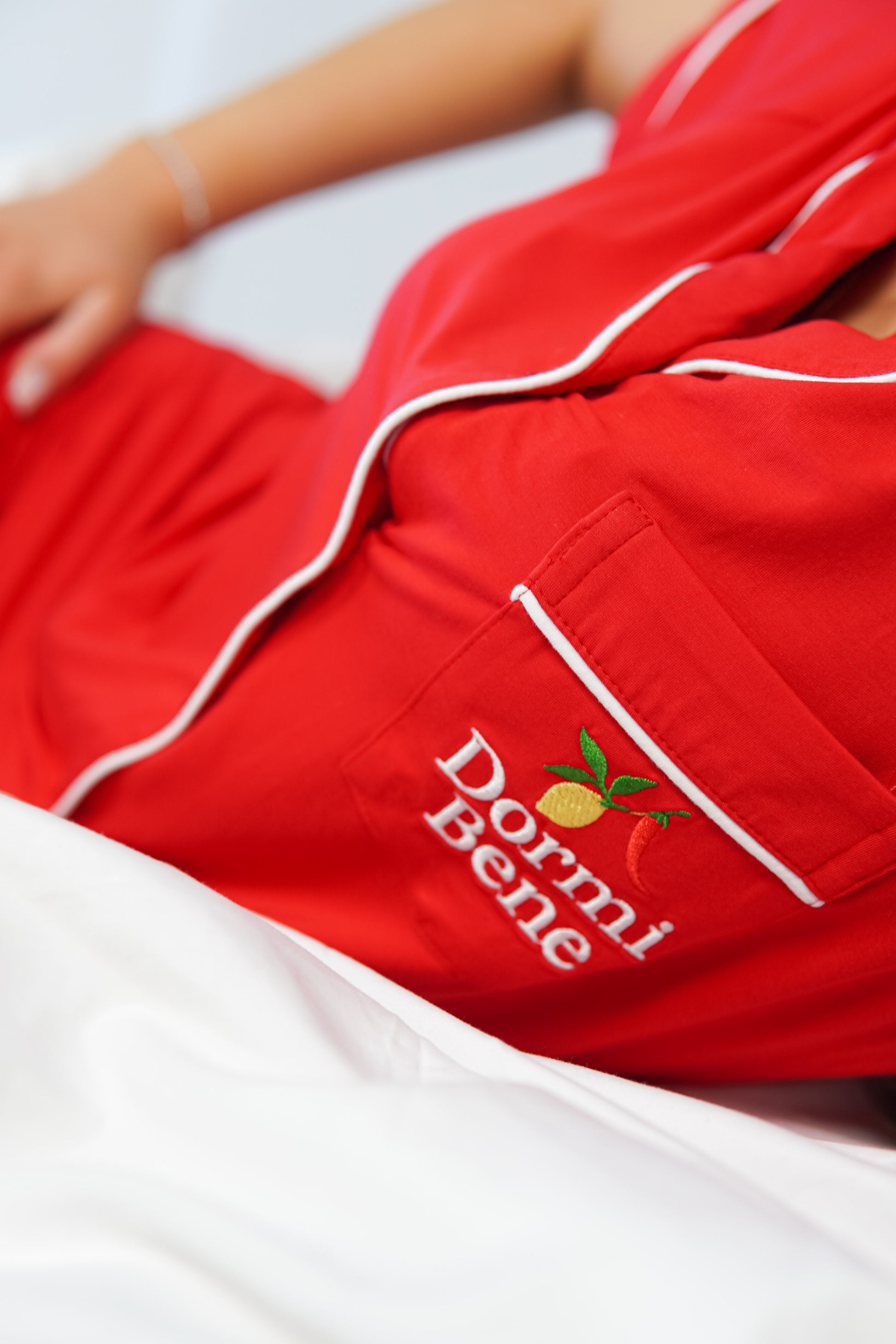 Piped in crisp white with Dormi Bene’s embroidered lemon-and-chilli emblem, this set is the definition of refined comfort. Perfect for slow mornings, spontaneous trips to the espresso machine, or evenings that linger a little longer than planned.